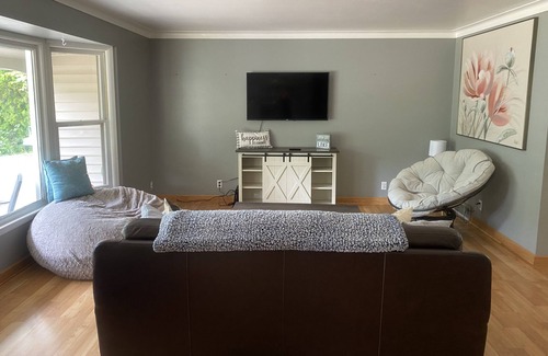 This older home sleeps 9-10 people with 1 king bed (master), 1 queen (basement), 2 twins (2nd main floor room), twin (basement), queen sofa sleeper (living room), and futon (basement). All beds were purchased in 2022.