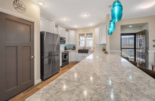 master, high speed WiFi, open floor plan, ample seating, large stone