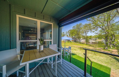 Enjoy privacy in the hot tub with the option of a full-deck privacy screen (bug free). Do this while watching your favorite sports, TV, or movie on the surround sound. You can do this while still getting the picturesque lakefront scene of the day or evening sunset.