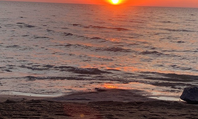 With four bedrooms, five bathrooms, two living rooms, large kitchen, private beach, stunning sunsets, and stocked fire pit this property offers a large family or two families an unrivaled place to unwind. Paddle in the cool waters or bring your Kayaks and follow the bay around to the Port Austin town center. Sit by the waters edge of an evening eating smores or quietly read under the shade of Pergola . A local restaurant half a mile away can also supply pizza and bar style food. One and a half miles into the village there a multiple places to eat.