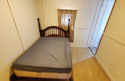Master bedroom has a queen size memory foam bed and the bathroom has a toilet, sink and NON working jacuzzi tub.