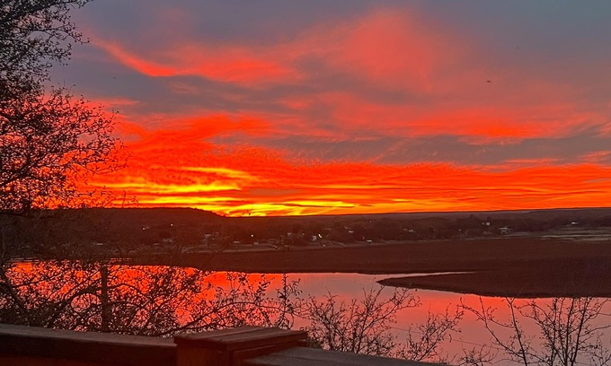 Come watch the sunset & relax by the water!!! This lake front property has everything you need to enjoy a get away! Perfect access to watch the sunset & water access to cool off. Paddle boat & kayaks are awaiting you. Boats and jetskis are welcome - you will have to anchor there is not a dock. YET!