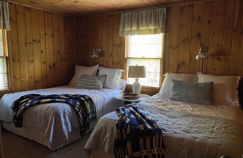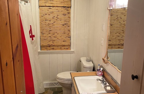 Beautiful family home in the Adirondack national park within steps of one of the most stunning lakes in the world. Featuring a private dock and swim area, fire pit and large patio with grill in quiet Cleverdale neighborhood. Located in prime location on the south end of Lake George just 8 miles from Lake George Village, 33 Miles from Saratoga Race Course and 19 Miles from the nearest ski mountain. This adorable adirondack camp sleeps 12 and is perfect for large groups with it's large open living dining area and great indoor outdoor living style. It has all the modern conveniences - central heating and air, smart tv and high speed internet, fully appointed kitchen and dining room, large capacity washer and dryer, 4 bedrooms and 2 baths. Perfect place to enjoy the lake with private swim area dock to accomodate a 30 ft boat, large patio with grill and lots of seating and a fire pit surrounded by comfy adirondack chairs.
