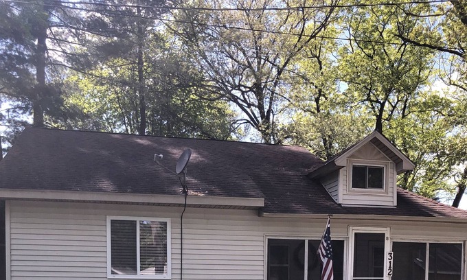 Make memories at Lake George while staying in our furnished cottage. There are 2 bedrooms with one queen bed in each room, a finished attic with bunk beds, CENTRAL AIR (newly added), four piece bath with jetted tub, laundry room with washer & dryer, many ceiling fans, kitchen with all accessories, loft with full size mattress for relaxing or sleeping, screened in front porch, and outdoor area includes fire pit with picnic table & charcoal grill. We can host up to four adults and two children comfortably. May sleep a couple additional guests, if willing to sleep on futon mattresses or bring your own sleeping bags/air mattress. Pets are our friends! The access to Lake George and Shingle Lake for swimming are just steps away. The Depot Grocery offers pizza, hand dipped ice cream, and many other refreshments. Dollar General is located right in town. The Swiss Inn restaurant/bar offers a large menu and entertainment. There’s plenty of parking space for your water and trail toys. Everything is in walking distance! Paved streets make it easy for you to bring your bicycles and ride. Friendly Lake George residents make your stay enjoyable. Canoe the Muskegon River, only 20 minutes away. Mount Pleasant Casino is 45 minutes away. Riding trails/ORV/snowmobile trails are located 15 minutes away in Leota. Within 45 minutes of Houghton Lake. Several ALL SPORTS lakes nearby. Not responsible for acts of nature that may cause power and/or cable/WiFi outages. Contact host with any questions.