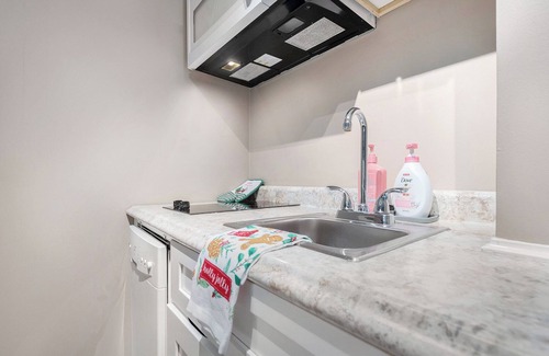 ☀ Kitchenette with 2-burner cooktop, microwave, dishwasher