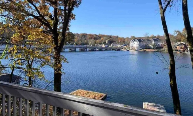 Enjoy your stay in this unique lake cottage with dock. Kitchen/living room on 2nd floor, 2 porches lake side, 3 bedrooms, a sleeper sofa downstairs & 2 bathrooms. Includes everything from 2 kayaks, paddle board & paddle boat, fishing, firepit, wifi, 8’ ft shuffle board, small pool table, electronic dartboard, spiders & lake bugs. Powerboats not included. Walk to Patrick’s Pub or Pavinci Italian restaurant bar. End of dock is <4 feet deep. 3 nights min. Dock your boat upon request. Permit#2022-5