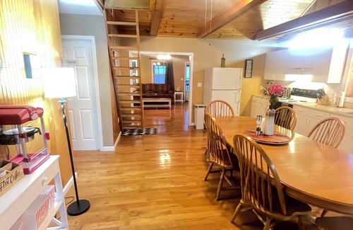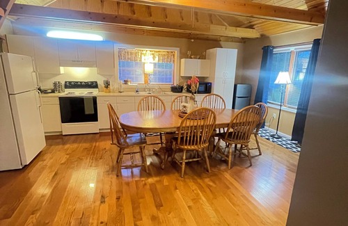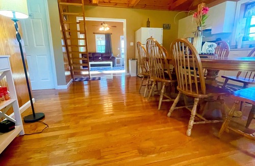 Lots of room to be together in the open Kitchen and Living room or room to spread out with two porches and a large sun deck. Large back yard for games and relaxing. As a traveler myself I hate to forget essential items. This property provides many of those, pots, pans, baking sheets, silverware, utensils, blender, waffle maker, toaster, popcorn machine, coffee bar. It has a refrigerator and a drink fridge along with many other amenities. Living room has board games and large checker board along with TV. WiFi is included. Bathroom includes basics needs including hairdryer. Bedrooms have extra pillows and liens. We want you to be at your home away from home.