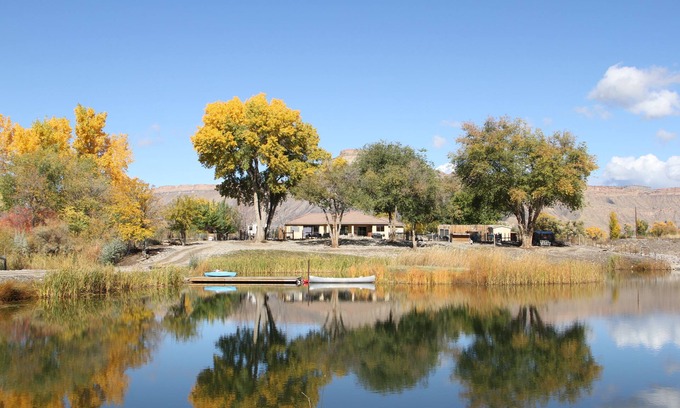 Visit our Lakefront 10 acre animal sanctuary, located along the COLORADO RIVER surrounded by the best Colorado, WINE COUNTRY, FISHING, RIVER RAFTING hiking, biking, golfing or skiing. Our farm has chickens that produce fresh eggs daily for your farm fresh breakfast help yourself to any fruits and vegetables from our gardens . We have friendly alpaca, pigs, mini horses, goats, dogs, peacocks that free range the property. wildlife geese, ducks, eagles, hawks, viewable from property daily. Fish private stocked lake or on banks of Colorado river. Located 10 min from grand junction airport and downtown grand junction. Bike ride to many of the local vineyards, Kayak, Paddle board, float the colorado river from property. Plenty of parking house is fully stocked w furnishings, artwork, glassware, cookware, from our travels around the world. House has more character and charm then most and is the type of property you will not want to leave and will be wanting to come back year after year. Owner/Caretaker lives/works on property. This is a working farm animal sanctuary w gardens, free range animals there is a caretaker taking care of daily chores, feedings, watering etc. There is a guest house attached to the main house, The owners house is over 3 acres away. There are friends, family, other guest, and workers on property at times.