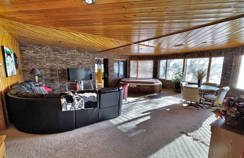 This lake house is the perfect place to get together with family and friends for a get away like nothing else offered in Mitchell with over 6,000 square feet it is plenty of room for everyone. In addition to the house there is a 2,600 square foot sporting complex available for use. The deck makes for easy access to the lake in summer for all the lake house activities.