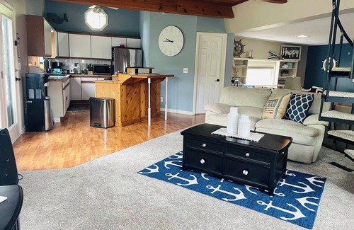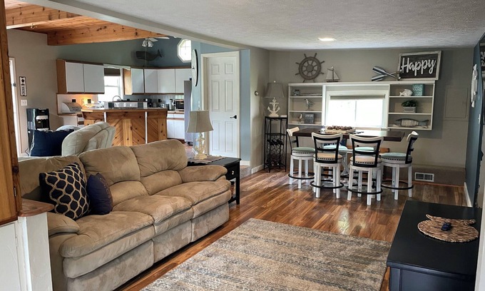 It is a beautiful home that sits on the water! The home is spacious has an open floor plan plenty of seating for entertainment , fireplace fire pit, docks for boating, walking distance to froggy’s and Tilton Hilton , WiFi and TV