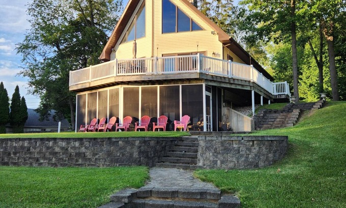 Welcome to Narrows Rd. Golf and Lake Retreat. I have two beautiful lake homes, VRBO ID# 4273268 & 4166727, on this chain of 7 lakes. This home is called VanBlarcom Beach. The home is unique being on a large property, 180' of shoreline. It's not a cottage and no neighbors. Over 250 rentals.