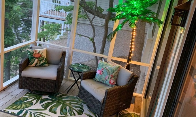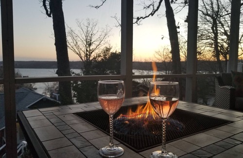 Sit by the fire and relax while enjoying views of Lake of the Ozarks. Nestled in the beautiful Tan-Tar-A Estates/Margaritaville neighborhood-resort, our 2 bed/2 bath lake house is great for couples or a small family. Fully stocked kitchen with updated appliances, 65" TV in the family room and TV's in both bedrooms. Covered front porch and BBQ grill. Nearby amenities (for additional fees) will keep you busy with seasonal pools, golf courses, indoor waterpark, golf, horseback riding, marina, fishing, hiking and more!