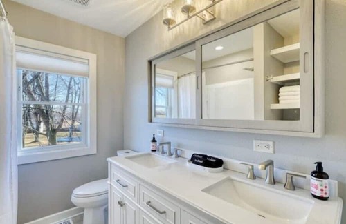 Head towards the lake with plenty of seating, sunbathing & fun. ***There is a set of 72 stairs down to the Lake from the house; no ADA access.*** Rooftop patio above boathouse near the Lake with lounge chair, bench and table that seats 4 with a large patio umbrella. Sandy Beach area for lounging, digging, or playing games. Splash in the Lake around the dock, and swim out to the floating raft for sunbathing or jumping into the water (15-20ft water depths). From Memorial Day through Labor Day dock that has built-in seating bench and space to sunbath/lounge is in the water. 1 kayak for use, and space to pull up your own boat. ***Inquire about Dock in-water if before Memorial Day or After Labor Day.***