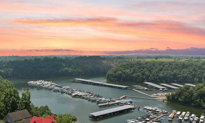 Welcome to your dream lake getaway! Perched above Lee's Ford Marina, this 4-bedroom, 3-bath lakeview home spans three levels with panoramic views of Lake Cumberland. Perfect for family vacations or group getaways, this spacious retreat sleeps up to 12 guests and combines modern comfort with lakeside living.