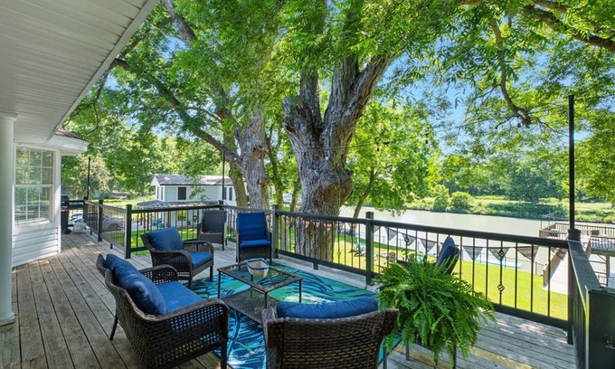 Welcome to our little slice of heaven nestled on one of the quietest locations on Lake McQueeney with a lot of space to run around, sit on the dock, chase fireflies and make memories with plenty of shade to stay cool as well. *As of March 2023, the McQueeney lake 💦 level was lowered due to repairs 🏗️ on the dam. The water by our shoreline is pretty shallow, but across the river the depth increases so kayaks and canoes can still be used to enjoy some fun in the sun! We've updated some of our pictures to reflect the present water levels. There is still plenty of water fun to be had as the water level is perfect for your littles to walk out in the water or stay on the rocks & go fishing. It’s also perfect for clam shell hunting, finding those special heart ❤️ shaped rocks or just putting your outdoor chair right in the water.