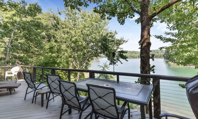 Relax by the lake in this Salem, SC waterfront home on Lake Keowee. Along with a well-furnished and updated interior, this property boasts a large deck with seating and grill, a screened-in porch, separate large waterside covered gathering area, fire pit, & private dock. Enjoy scenic views, water sports, fishing, and many other local activities. Oconee County is filled with lakes, rivers, waterfalls, trails, good food, and history. Plus, the Clemson Tigers play just 33 minutes away!