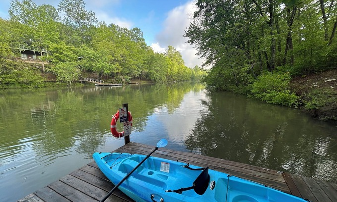 Guests may enjoy the private dock and two kayaks available for guest use. The circular gravel driveway is gated. The site has a slope down to the lake with steps down to the lake. Please note that a neighboring friendly dog and cat may come say hello during your visit. There is wildlife in the area.