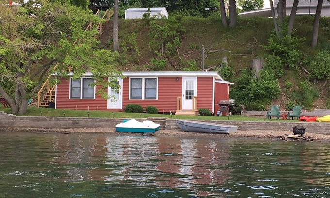 Walk out the front door and enjoy coffee and casual dining on the shore underneath the shade of beautiful old-growth trees. Newly-renovated cottage with air conditioning, a queen bed, modern appliances including microwave. This is in the beautiful Peach Orchard neighborhood on a town maintained, paved road. This cottage is served by the town municipal water system, unlike many that have lakewater drinking water systems.
