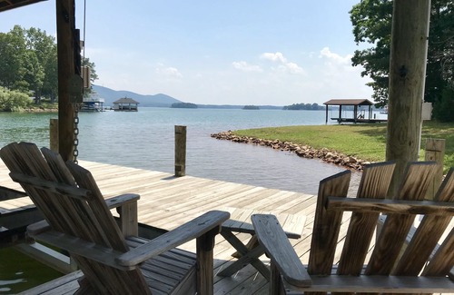 The home is in a quiet, shaded, older neighborhood, perfect for walking & jogging. Lake location is supreme, being near the mountain and the dam at the deepest, and cleanest part of the lake. The quiet, protected cove is very safe for canoeing and waterplay around the dock. We’re conveniently located a half mile from Mitchell's Point Marina and SML water sports and boat rentals.