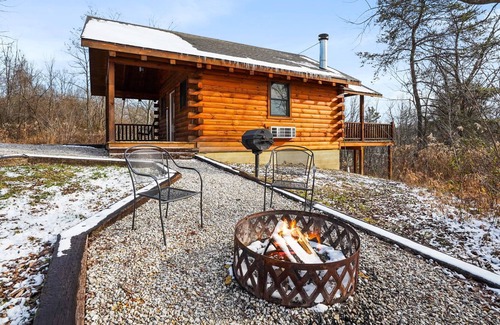Adorable newly built 2020 cabin for just two! Private and secluded and in the Heart of the Hocking Hills and overlooking Lake Logan. Central to the State Park and downtown Logan. Studio cabin with one private bathroom, wood burning fireplace, well equipped kitchen, private hot tub, outdoor fire pit, audio system, and charcoal grill. Perfect for a cozy get away retreat!