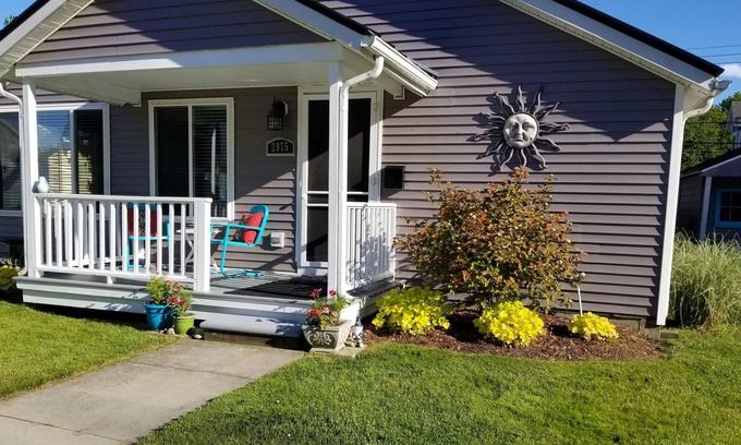 This cottage has been totally updated. It has a stone fireplace, 55" TV, WiFi, granite counters, Stainless appliances, washer/dryer, Microwave, coffee pot, dishes, pots and pans. Two large bedrooms with queen mattresses, and a sleeper sofa. 1.5 updated bathrooms. Large backyard with gas grill and table and chairs. New landscaping in front. The view is fantastic with sunrises to write home about. Our quiet community is sure to impress!