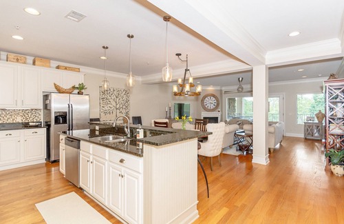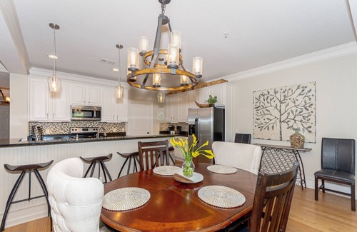 Our fully equipped kitchen has granite countertops, stainless steel appliances, plenty of counter room & cabinet space. All small appliances are provided including TWO coffee makers. We truly want you to feel you are at your home away from home. The kitchen has a raised counter bar area with 4 bar stools to keep company with the cooks or to feed the ever-hungry children.