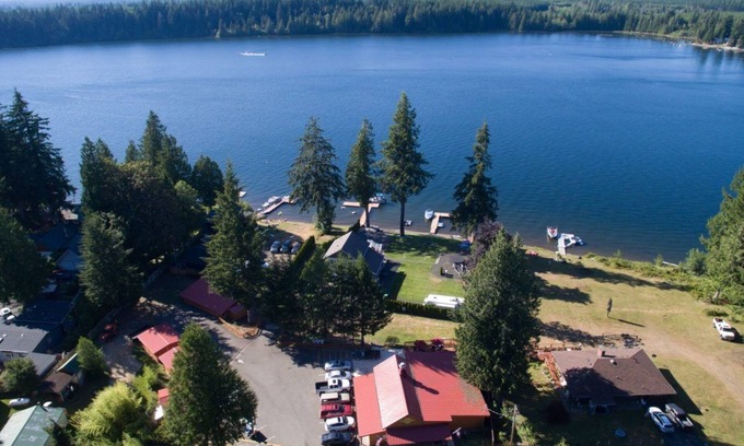 Relax at the Lake Cabin! Lake front and private dock for the Resort. Free WIFI! Restaurant bar and grill with family dining options just steps away! Beautiful views of the lake! Fresh air and trees around a very beautiful freshwater lake fed by two creeks and a naturally occurring Hot Springs! One of the warmest lakes in western Washington! Public boat launch and parking lot just 500 feet away down the road. Dock your boat at the resort's dock, eat lunch and go back out on the lake for more fun! Water Skiing and tubing are very popular. Swimming off the dock (no life guard) or put your own kayak or stand up paddle board in the water!