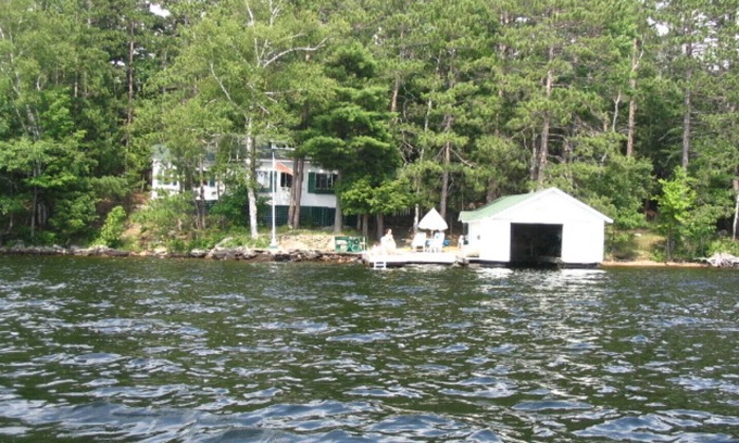 Nice family cottage near Algonquin Park- pretty, wooded, private, sun all day from 11 AMgreat SW view and sunset,, 4 bedrooms (King, queen, 4 twins). stone patio, wood deck near dock, dock, kiddies natural wading pool, BBQ, fireplace, screened bird-themed veranda, boathouse (7.5 ft wide) incl, 3 kayaks provided, 5 life preservers, large hammock, tiki torches, clear water, Parking for 3 cars plus boat trailer, prime time available. Also available - cottage next door if you prefer at lower rate (we own). Public beach and boat launch 5 miles away in town of Dwight Ontario. Free firewood, and spring drinking water Perfect!. Check out pics and video..