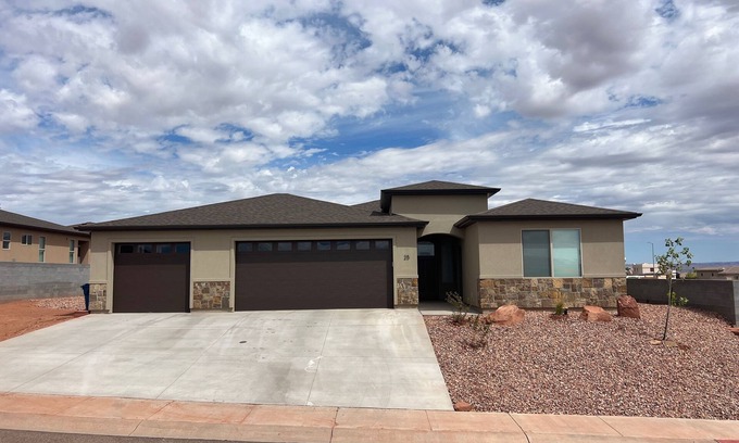 This beautiful stylish gem found minutes from the Lake Powell, Antelope Canyon, and Horseshoe Bend. Stunning canyon views in this newly built, impeccably clean, designer decorated, luxurious retreat. This home is a brand new build from 2023. It sleeps 13 and has 3 bedrooms amd 3 full baths. The outdoor back patio has beautiful hot tub, and stunning views of Antelope Canyon and Lake Powell in the distance. Ping pong table in the third garage with a 75 inch tv provides a great space for the kids to play and enjoy. Property has 6 parking spots and a huge sideyard for boat parking. Dont miss this true gem!