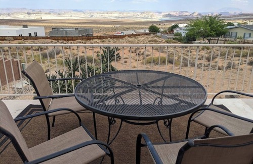 This newly remodeled house has amazing Lake Powell views! Beautiful views of Lake Powell and the surrounding canyons are visible from the living room and deck. The home is clean and well-furnished to sleep up to 6 guests. Enjoy our curated collection of books and artwork that showcase the beauty and history of this unique area and people. We want this home to feel relaxing and spa-like to match the surrounding desert landscape. (We're new listing on VRBO but currently have a 4.94 rating on the "other" vacation platform)