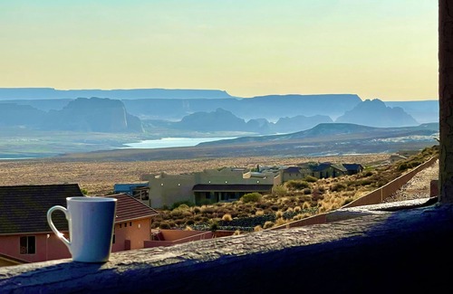 Amazing Lake and Canyon views, outdoor dinning patios, BBQ, two large king suites with additional beds, close to Marinas, Page, Lone Rock Beach, off street RV/Boat parking, Double, garage, fast wifi, remote office. Dog friendly.