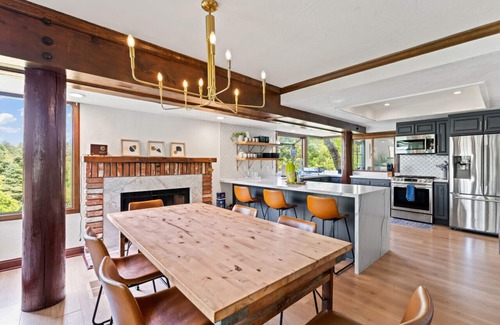 Welcome to Lake Reflection Point! Our Luxe retreat boasts 4 bedrooms and 4 1/2 baths, offering ample space for relaxation and entertainment. Enjoy breathtaking views of the tranquil lake and enjoy dining from the comfort of your gourmet kitchen. With close proximity to the charming village, guests can explore boutique shops and delectable dining options. Unwind on the spacious multi-level decks and soak in our hot tub. Please note there is no lake water access. Lake Arrowhead is a private lake. The only access is the private trails surrounding the lake.