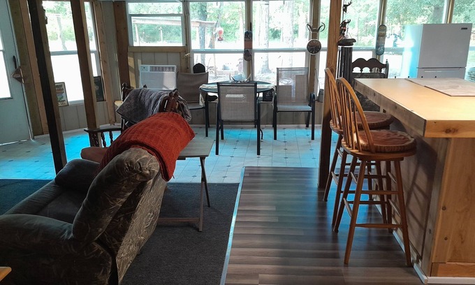 Paw Paw's Cabin #2 is just 2 blocks, walking distance from the Monterrey Pk an Boat launch on Lake Sam Rayburn. 2 Bed rooms, 1 bath, full kitchen, sleeps 6 to 8, 4 beds, 1 King, 1 Queen, 2 twins. Country quite an safe at the dead end of the single entrance Rd of Monterrey Pk Rd, all family owned properties here, set on three acres of private land with the National Forest an Core property just behind us. Perfect for the Fishermen an woman wanting to be right at the lake, or the family get away to the lake with the nice
