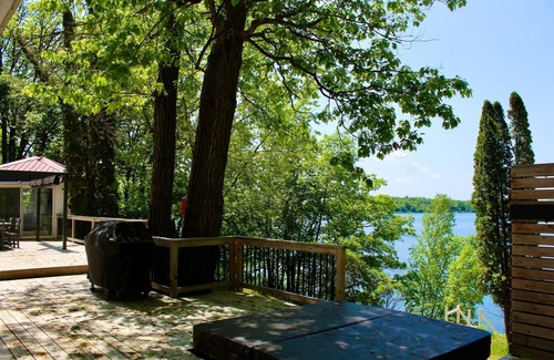 If you're dreaming of a stunning lake home with picturesque sunsets and ample room for guests, your search ends here! This exceptional property is located on the pristine and highly coveted Lake Seven (Scalp), boasting 150 feet of beautiful waterfront on a private lot exceeding 1 acre. The spacious main house features 4 bedrooms and 2.5 bathrooms, complete with elegant granite countertops, 3 cozy fireplaces, vaulted ceilings, and spectacular lake views. Enjoy the luxury of having 2 primary bedrooms with en-suite bathrooms—perfect for family and friends! Plus, your guests will love the inviting seasonal bunkhouse, which includes its own bathroom for added convenience. Start your day with a cup of coffee on the expansive new deck, where a hot tub awaits to enhance your relaxation. Create lifelong memories on the impressive Pier Pleasure Dock system, and unwind on the brand-new cedar platform by the water. This property also includes a two-car heated garage, a carport, an in-ground sprinkler system, and two sheds—one by the lake for your water toys and another by the garage for all your storage needs. With two convenient driveways—Driveway #1 leading to the bunkhouse and garage, and Driveway #2 providing access to the carport and main house—this property is ideal for both entertaining and retreating. Don’t miss your chance to rent this incredible lakeside paradise—come see it today! Managed by Sota Lake Properties.