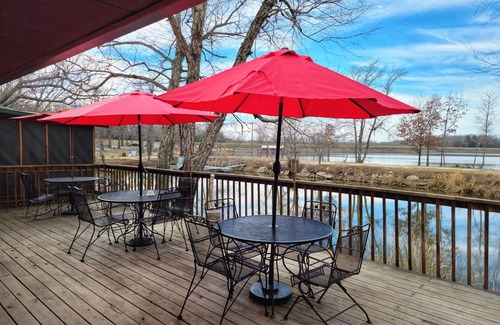 Enjoy a gorgeous view of the lake from our spacious deck that includes ample shaded seating. End your day watching the sunset go down on the lake horizon.