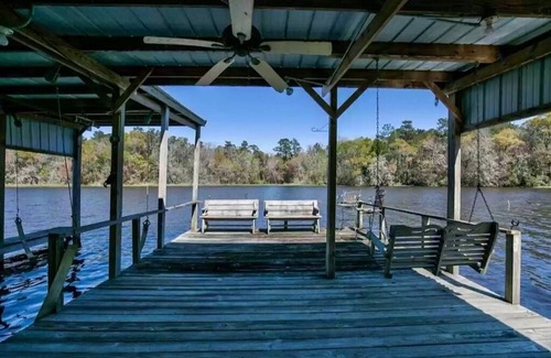 Lake Talquin lakefront home with large covered porch. You'll love the boathouse with 2 boat bays available, a sunroom room, sink and fish cleaning station. Open living area, kitchen with bar, dining room - great room, sun room, comfortable leather seating, and an amazing lakeview.This 3BR/2BA lake retreat is literally steps from the lake. Bring your boat , or fish directly from the dock. The perfect lake retreat. Public boat ramp less than a quarter of a mile down the road. Enjoy Wifi, Netflix, and Roku. 19 miles from FSU stadium. Please note: There is a 3rd larger boat slip occupied by a pontoon boat which can be moved for 7 day or more stays for a fee of $100. No air boats due to noise ordinance
