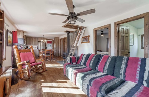 • Living room with fireplace, dining area, fully equipped kitchen, full bathroom
