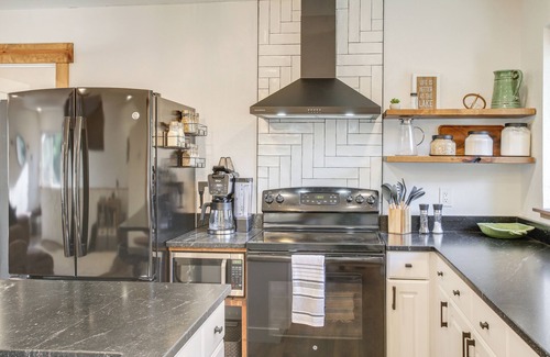 - Stove/oven, refrigerator, dishwasher, mini microwave (cannot accommodate full-sized plates)