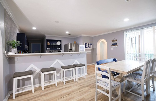 This modern lake house is so close to Morgan's Point/ Temple Lake Park that you can dock a boat in minutes from this location. Gorgeous views of Belton Lake from two decks, with outdoor entertaining. Perfect for family lake vacations or fishing trips. Sleeps ten adults comfortably, plus kids. This 3000+ sq feet home has a game room, office + 4 bedrooms. Huge kitchen and several indoor/outdoor dining areas. The perfect large lake home for making memories. Less than 12 minutes to the heart of Temple, BSW.