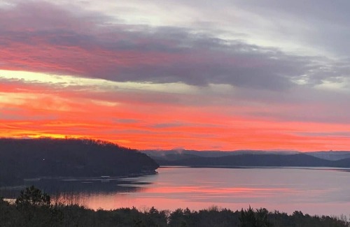 Amazing lake view from your beautiful honeymoon cabin. Cabin includes a Jacuzzi, fireplace, deck , king bed and full kitchen.