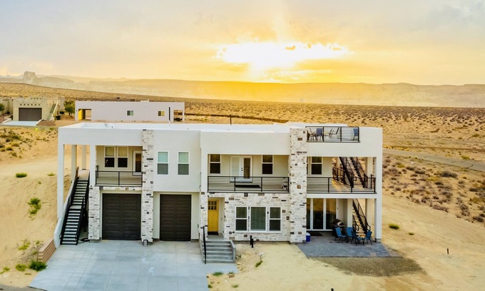 Brand new house for large groups for a fun weekend at Lake Powell, Grand Canyon, National parks or a week away from the world in the beautiful Lake Powell area. View of the lake with magical sunsets & scenery. 5 minutes to Wahweap marina & Lone Rock is just a few minutes down the road. Great for family's!!