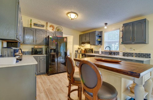 Unspoiled views of Norfork Lake and lots of space to enjoy the outdoors await you at this Mountain Home vacation rental. This colorful 4-bedroom, 2-bathroom home features a long sloping yard with a fire pit looking out over the water, a deck and patio space with an outdoor heater, and a marina less than a mile away! Spend the warmer months out on the lake or grilling up some dinner. When the weather turns cold, make s’mores under the stars or cozy up inside by the fireplace and stream a movie.