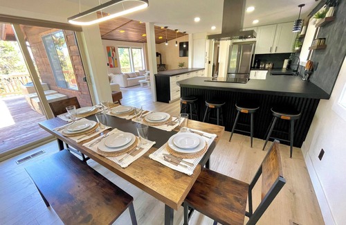 Nestled in the trees above Klamath Lake sits "Hill Top House" offering a two-story residence designed to cater to both large groups and small gatherings. The views of the lake from the double-leveled decks invite you to unwind in the serene beauty of your surroundings while immersed in nature.