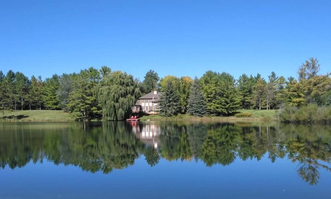 The apartment is located on the shore of Sylvid Lake at the northwest corner of Hyw9 and Hyw50 in central GTA. and guests enjoy 2 acres of lawns, large decks and docks.. The apartment is part of a luxury estate. The suite contains a bedroom with a living room, a kitchen, a bathrooms and a private entrance. We provide a bright, clean, private, quiet place to stay, like a private resort. The Equestrian Park is only about 8 minutes away.