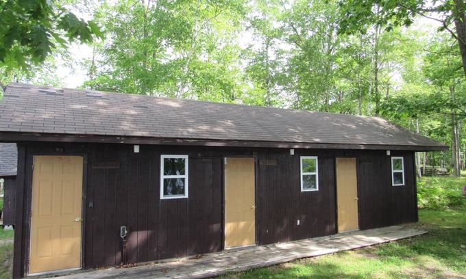 This building has three individual dry rooms with each having a microwave and a mini fridge. One unit has a queen size bed, and the other two units each have two twin size beds. The firepit, beach and hiking trail are all located nearby.