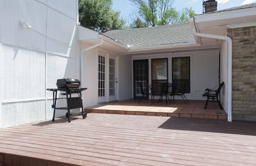 Spacious house for 18 people on a Lakeshore 1/4 acres lots. New exterior deck is a great place for outside gathering. Fenced yard on a hill offers a play ground for kids and pets. We are one mile away from a public boat dock on Lake Ray Hubbard. Close to TX-66, I-30, shops and restaurants. Modern interior renovated. Four bedroom downstairs and one large bedroom upstairs are suitable for large groups. Huge living, dinning and kitchen areas.