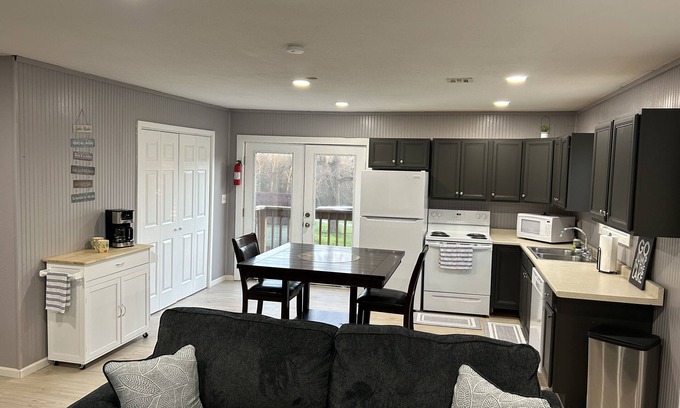 Discover the charm of our newly renovated lake home on stunning Stockton Lake! Nestled in a tranquil neighborhood just south of Stockton, Missouri, this two-bedroom, two bath retreat accommodates six with a comfy pull-out queen-size bed. Marvel at the lake view and take a short stroll to the waters edge. A paved semi-private boat ramp, a mere three-quarters of a mile away, awaits your aquatic adventures. Step outside, and within two minutes, explore thousands of acres of Corps of Engineers property on various hiking trails. Bring your boat, and relish in Stocktons clear blue waters-perfect for skiing, tubing, or casting a line for the diverse fish species inhabiting the lake. Your lakeside escape awaits!