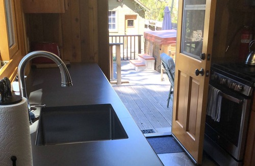 Beautiful, clean, 1947 rustic Tahoe style cabin steps from year-round fun. Two bedroom/1 bathroom. Relaxing open concept living area with updated kitchen, comfy living room furniture, unlimited Netflix access, and high speed internet . Kitchen is complete with all the necessary utensils and cookware to enjoy baking, roasting or grilling. Direct access to deck, hot tub and grill from kitchen. Lake views from every room. The 2 bedrooms upstairs have a queen bed in one room and a queen size bed in the adjacent room. There is a queen size sofa bed in the living room. The yard is completely fenced for your furry friends. The large deck has a table for 6 with a great view of the lake. The lower garden has a wonderful propane fire pit to enjoy during the summer and two lounge chairs with umbrella for the afternoon nap or a good read. Enjoy the classic Candlestick Park seats on the very back deck. Best seats in the house. The cabin comes with 2 pairs of snow shoes, 2 Giant mountain bikes, 2 new 10 foot kayaks with kayak carts and all the kayak accessories, large beach cart and beach chairs. This cozy cabin screams Lake Tahoe charm. You can curl up with a good book and enjoy the views or explore some of the most beautiful scenic grandeur on this earth. Great hiking, mountain biking, skiing, boating within a 10 minute drive. Fun all year around.