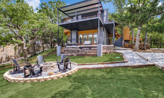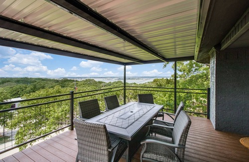 This lakeside retreat offers plenty of room to host your next family & friends gathering. Kick back & enjoy the views at this newly remodeled 5 bedroom, 3.5 bathroom Lake Texoma vacation getaway. Inside you will find the comforts of home with a fully stocked kitchen and breathtaking lake views from the moment you walk through the door. There is a gameroom with a pool table, 6 smart TVs throughout & built-in bunk beds. Enjoy afternoon barbeques on the balcony, bonfires at the outdoor fire pit, or some beanbag toss on the patio. Highport Marina, hiking trails & golf courses are all just minutes away.