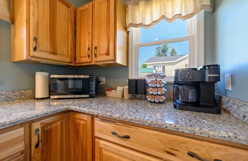 -Coffee bar: Keurig Duo, coffee, creamer, sugar, tea, cocoa